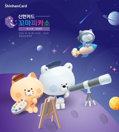 ‘우주여행에서 외계인 두두와 셀카봉으로 기념사진을 찍는 우리 가족’