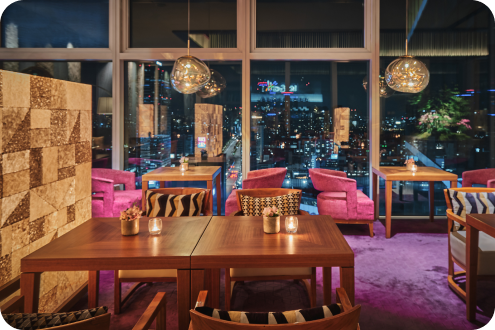 더 라운지는 호텔 최고층인 24층에 위치해, 서울 도심을 내려다보는 탁 트인 전망과 함께 우아하고 로맨틱한 분위기를 선사합니다.