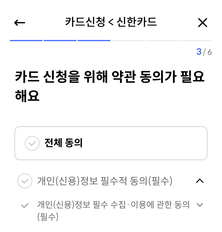 ※ 카드 신청 다음달 말일까지 약관 전체 동의 유지